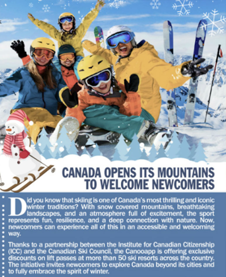 Thanks to a partnership between the Institute for Canadian Citizenship (ICC) and the Canadian Ski Council, the Canooapp is offering exclusive discounts on lift passes at more than 50 ski resorts across the country. The initiative invites newcomers to explore Canada beyond its cities and to fully embrace the spirit of winter.