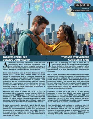 Free, confidential, and available to residents aged 16 and over, the TCCS can be reached through 911, when the dispatcher directs the case, or through 211, which connects directly to the service. In addition to English and French, support is provided in more than 200 languages, including Portuguese, reflecting Toronto’s diversity.