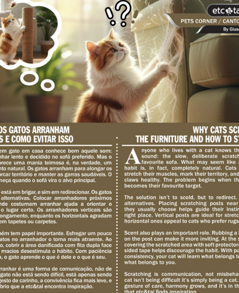 Scratching is communication, not misbehaviour. Your cat isn’t being difficult — it’s simply being a cat. With every gesture of care, harmony grows, and it’s in that balance that etc&tal finds inspiration.